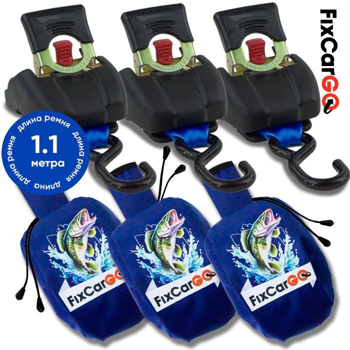 Самозатягивающиеся ремни крепления груза 50 мм. 1,1 м. с чехлами (3 шт)